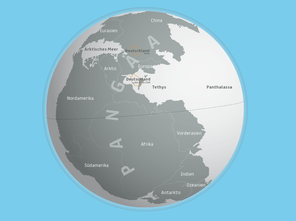 3. Erdkugel Pangäa, © Städtische Museen Heilbronn, Illustration gruppe sepia, Heilbronn